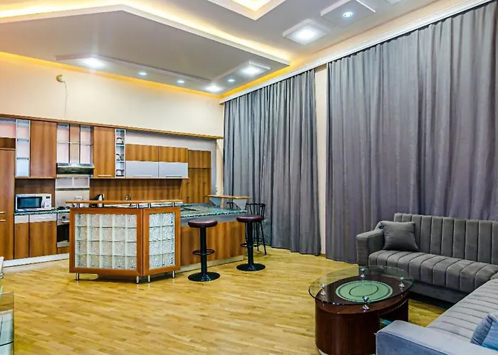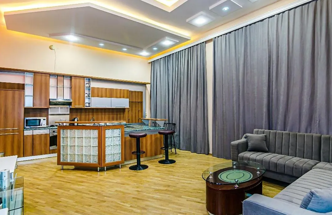 Located a 20-minute walk from Philarmonic Garden, the spacious Apartment Downtown In Nizami Mekhrably overlooks the garden. Wi-Fi and parking are among the essentials at guests' disposal.